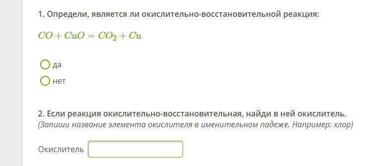 Определи, является ли окислительно-восстановительной реакция: