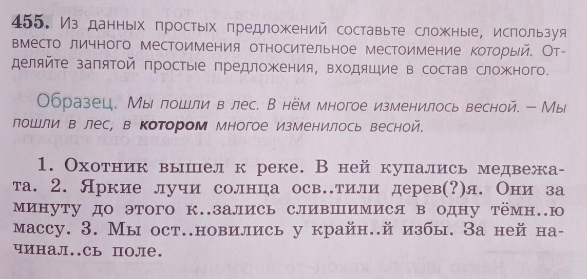 Из данных простых предложений Составьте сложные используя вместо личного местоимения относительные местоимения которые отделяются, простые предложения входящие в состав сложного
