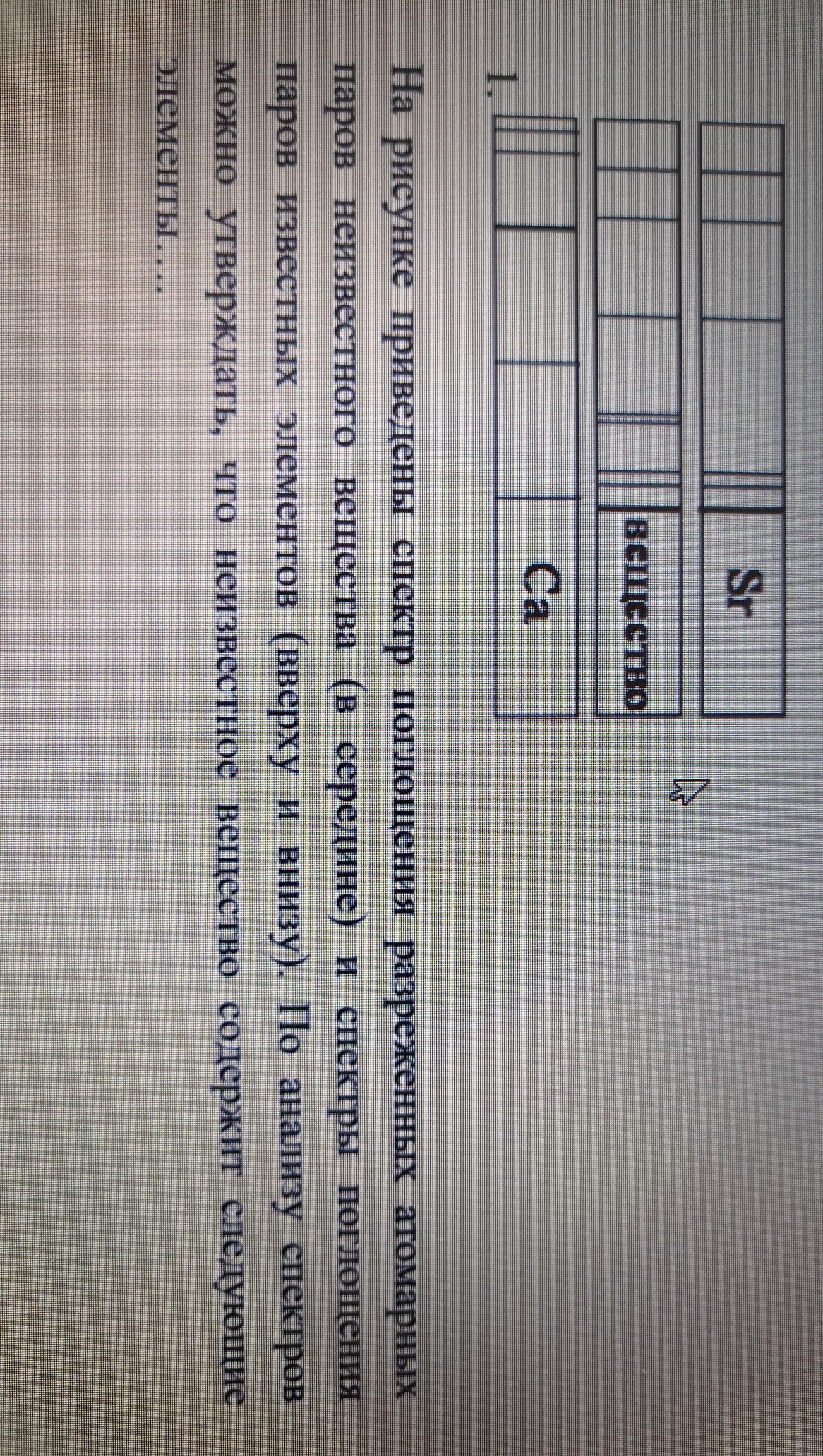 На рисунке приведены спектр поглощения разреженных атомарных паров неизвестного вещества (в середине) и спектры поглощения