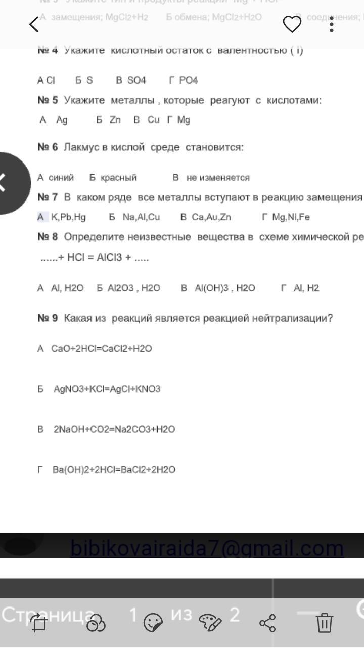 Ответ: 9. г) Ba(OH)2+2HCl = BaCl2 + 2H2O