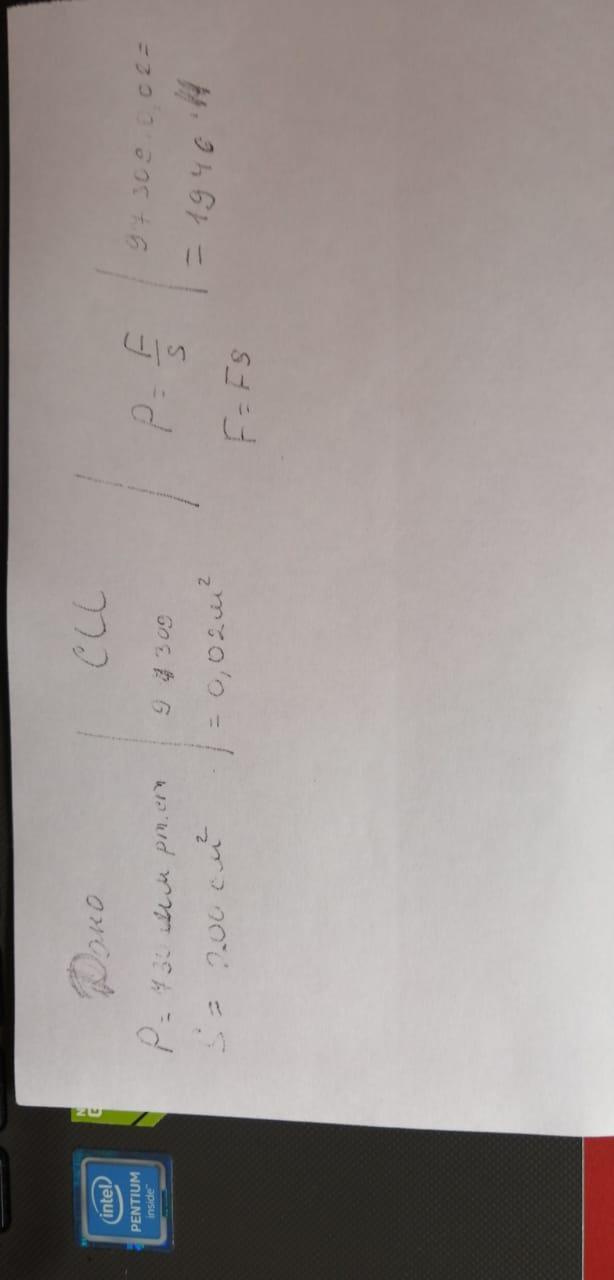 Помогите срочно! С какой силой будет оказывать давление воздуха на объект, если давление равно 730 мм.рт.ст. А площадь поверхности объекта 200 см в квадрате.