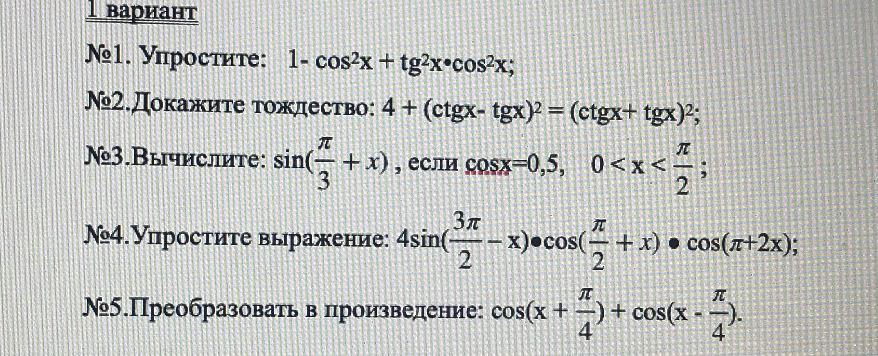 ТРИГОНОМЕТРИЯ , Помогите пожалуйста !!!!!! 2,3,4,5 номера