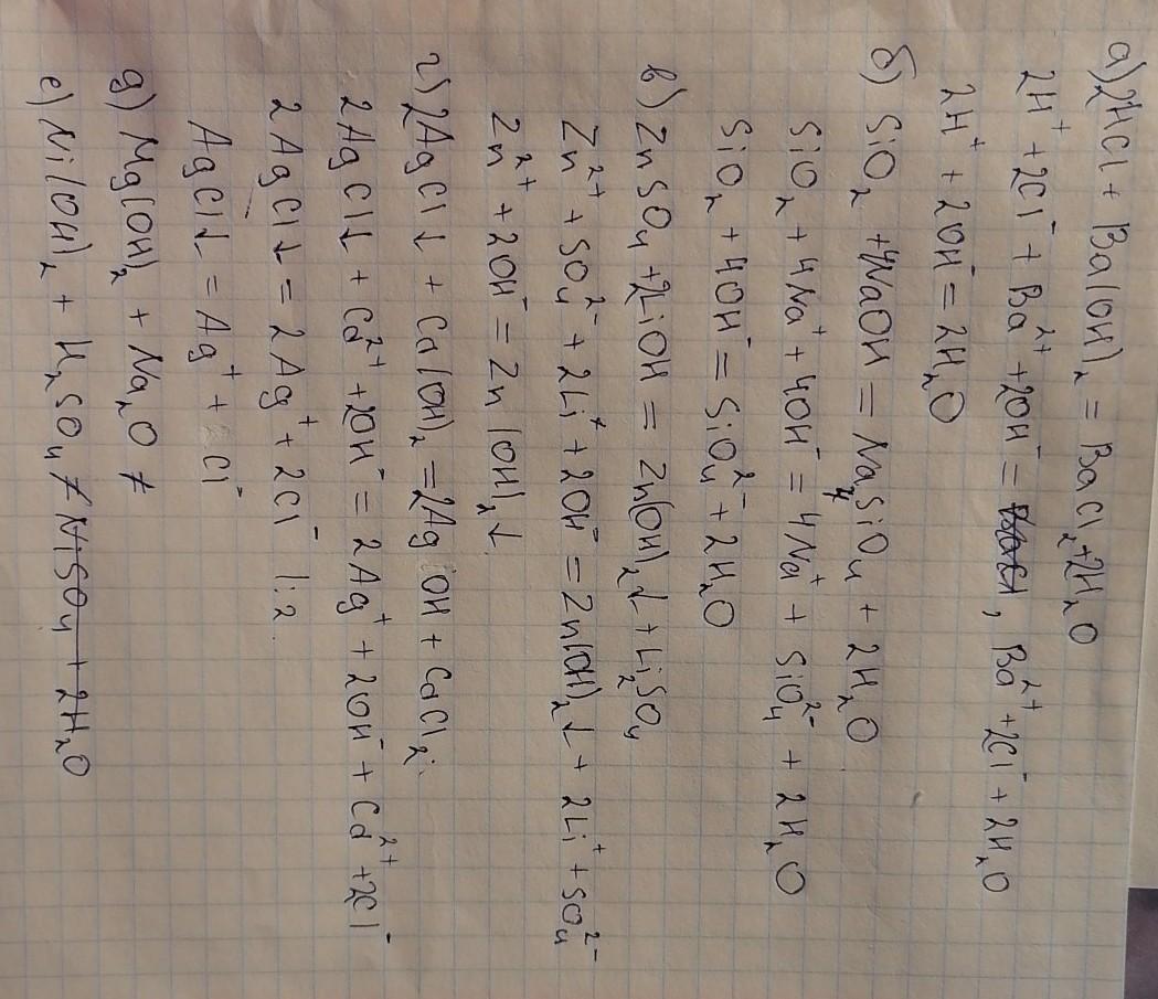 2. Приведите молекулярные и ионные уравнения возможных реакций:
