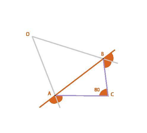 У ΔABC ∠C = 80°. Знайдіть градусну міру ∠AOB, якщо O - точка перетину бісектрис зовнішніх кутів трикутника при вершинах A і B.