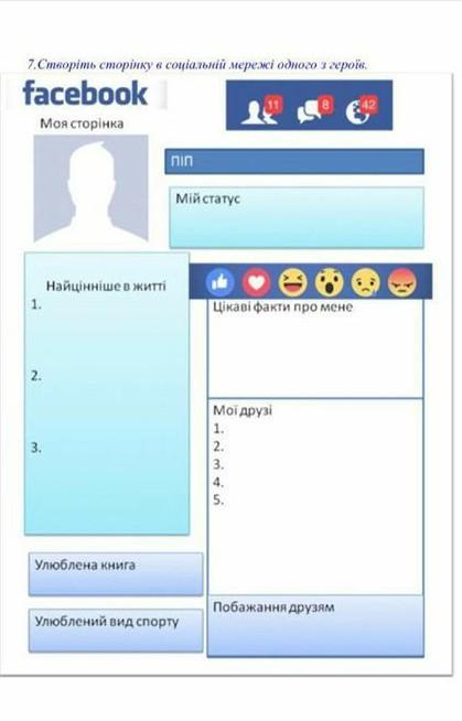Потрібно створити фейсбук сторінку одного з героїв твору "Шпага Славка Беркути"