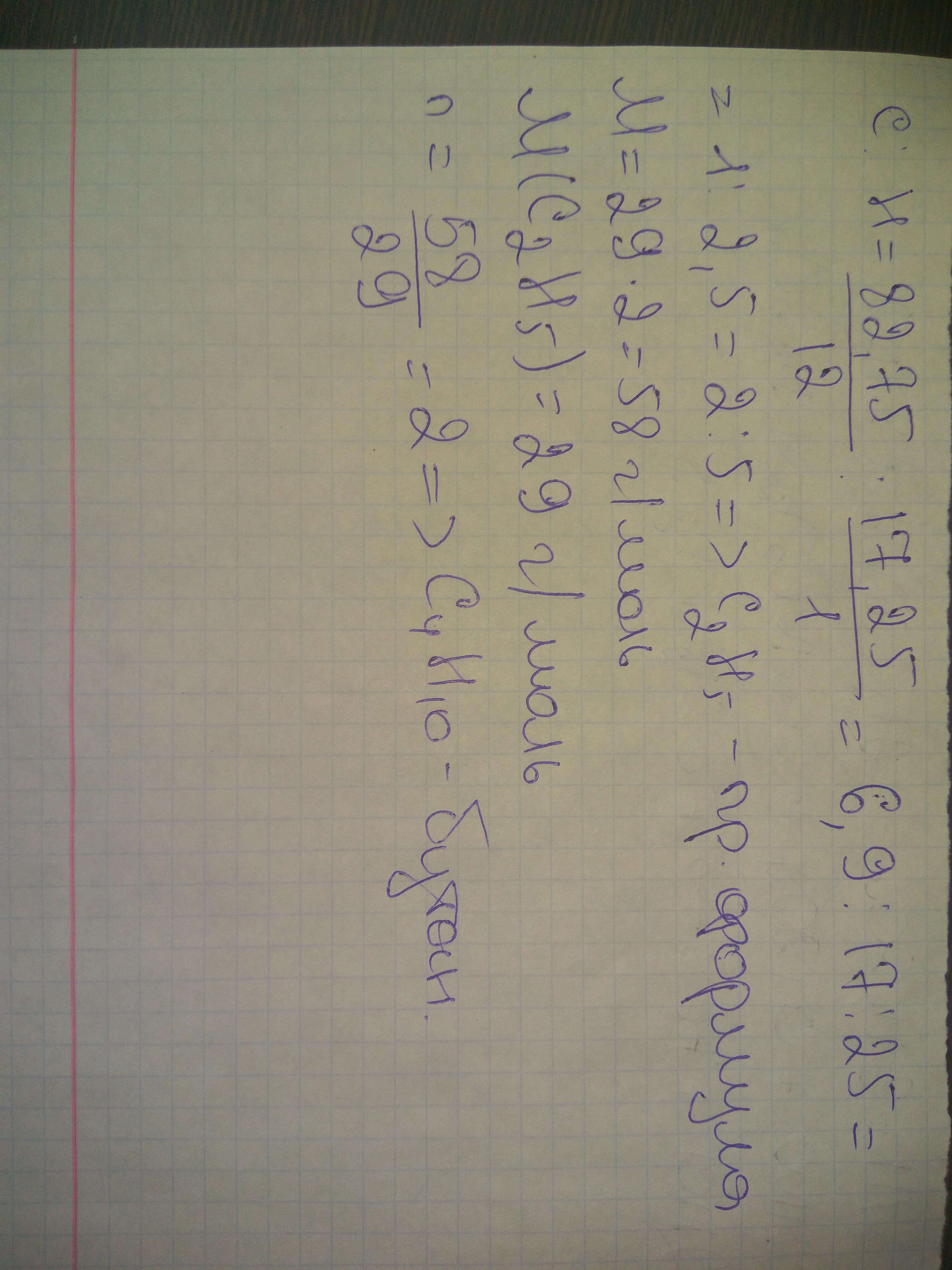 Выведите молекулярную формулу углеводорода массовая доля углерода в котором составляет 82,75%, а водорода 17,25%. Относительная плотность пара этого углеводорода по воздуху равна 2.