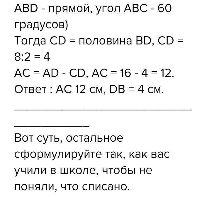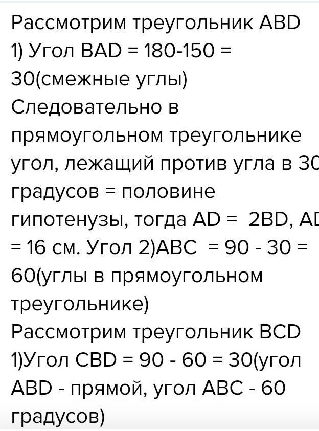 Х=60°угол АВС , значит угол СВD = 30 ° , а сторона противолежащая углу 30 ° равна половине гипотенузы