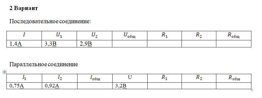 2. Соберите цепь для изучения последовательного соединения резисторов; измерьте силу тока и напряжения ; проверьте выполнение закона соединения ; сделайте вывод.