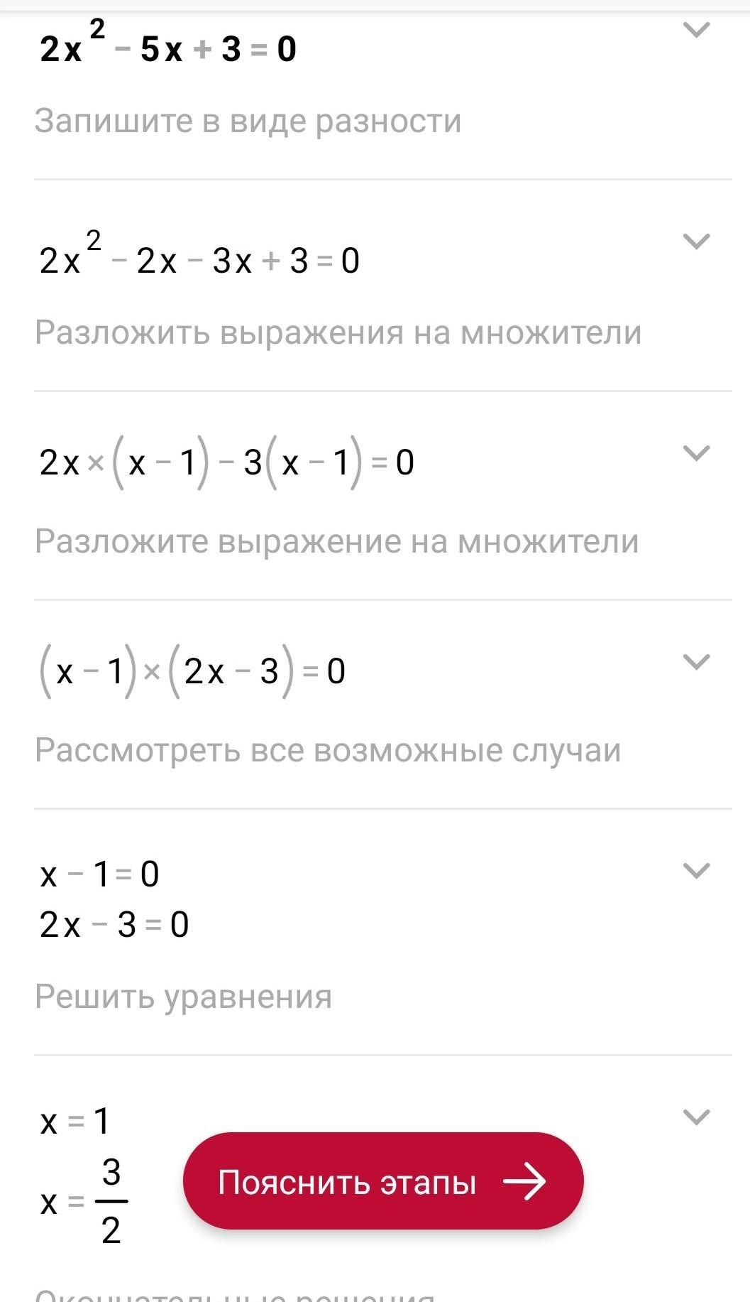 1)Реши квадратное уравнение 2x2−5x+3=0.