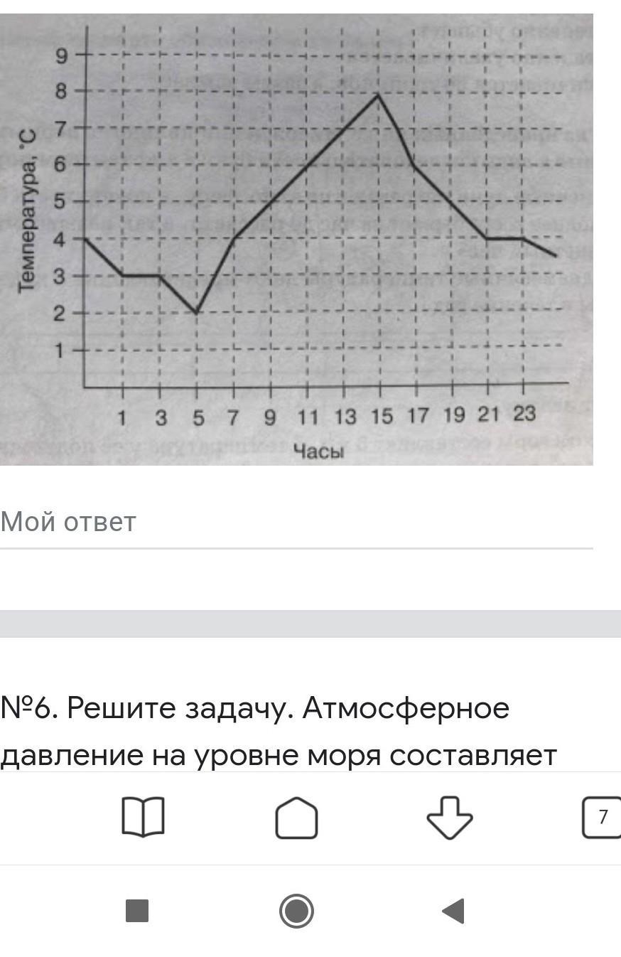 Перед вами график суточного хода температур. Воспользуйтесь им для того, чтобы ответить на вопросы. 1) Чему равна максимальная температура воздуха в течение суток? 2) Когда она отмечалась? 3) Чему равна минимальная суточная температура? 4) Чему равна амплитуда температур? *