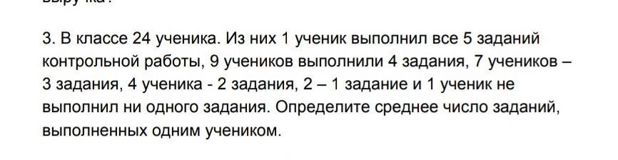 Количество каждых учеников умножаем на количество выполненных ими заданий,а дальше прибавляем,а затем делим на количество учеников чтобы узнать среднее арифметическое выполненных задач