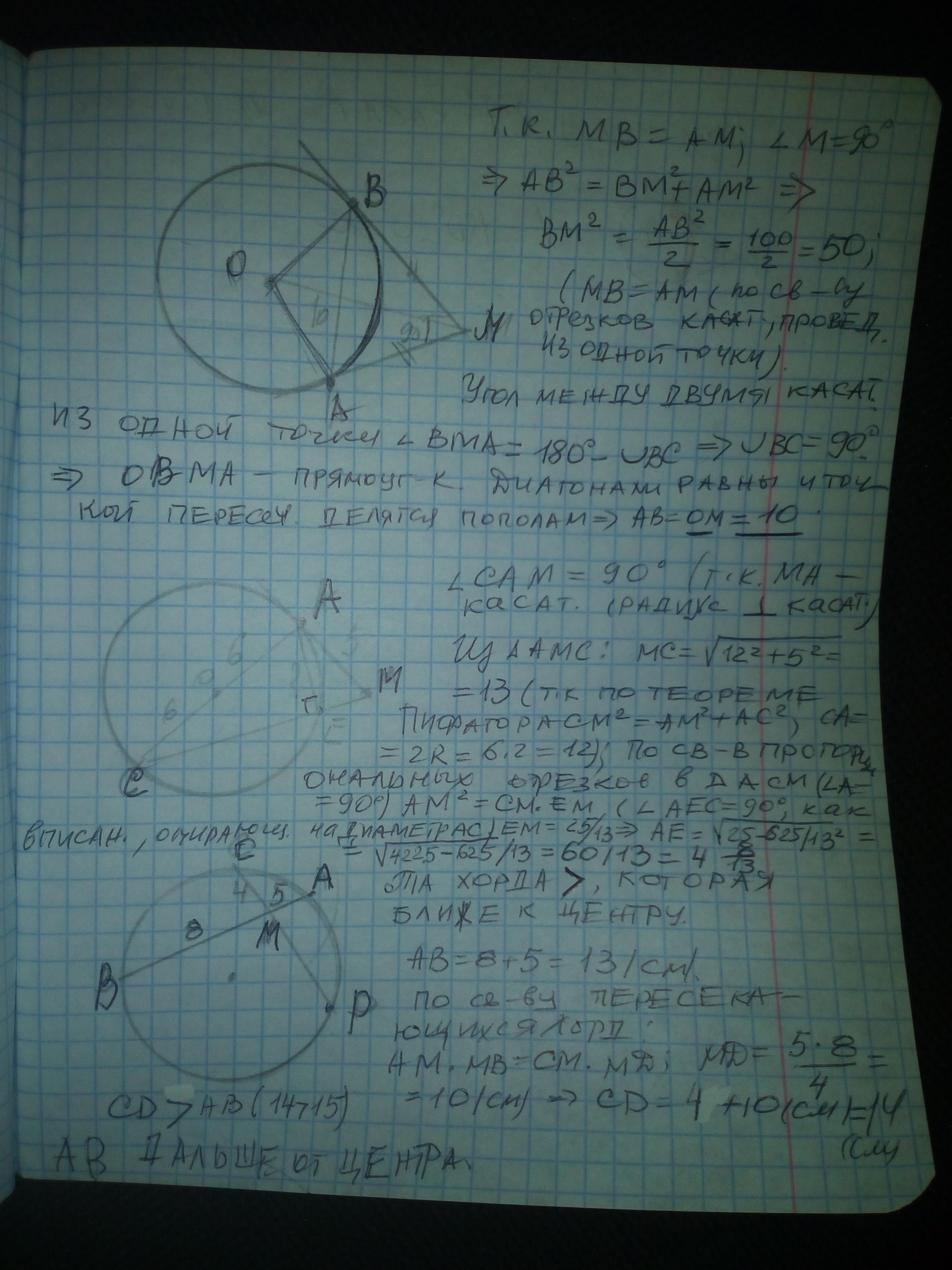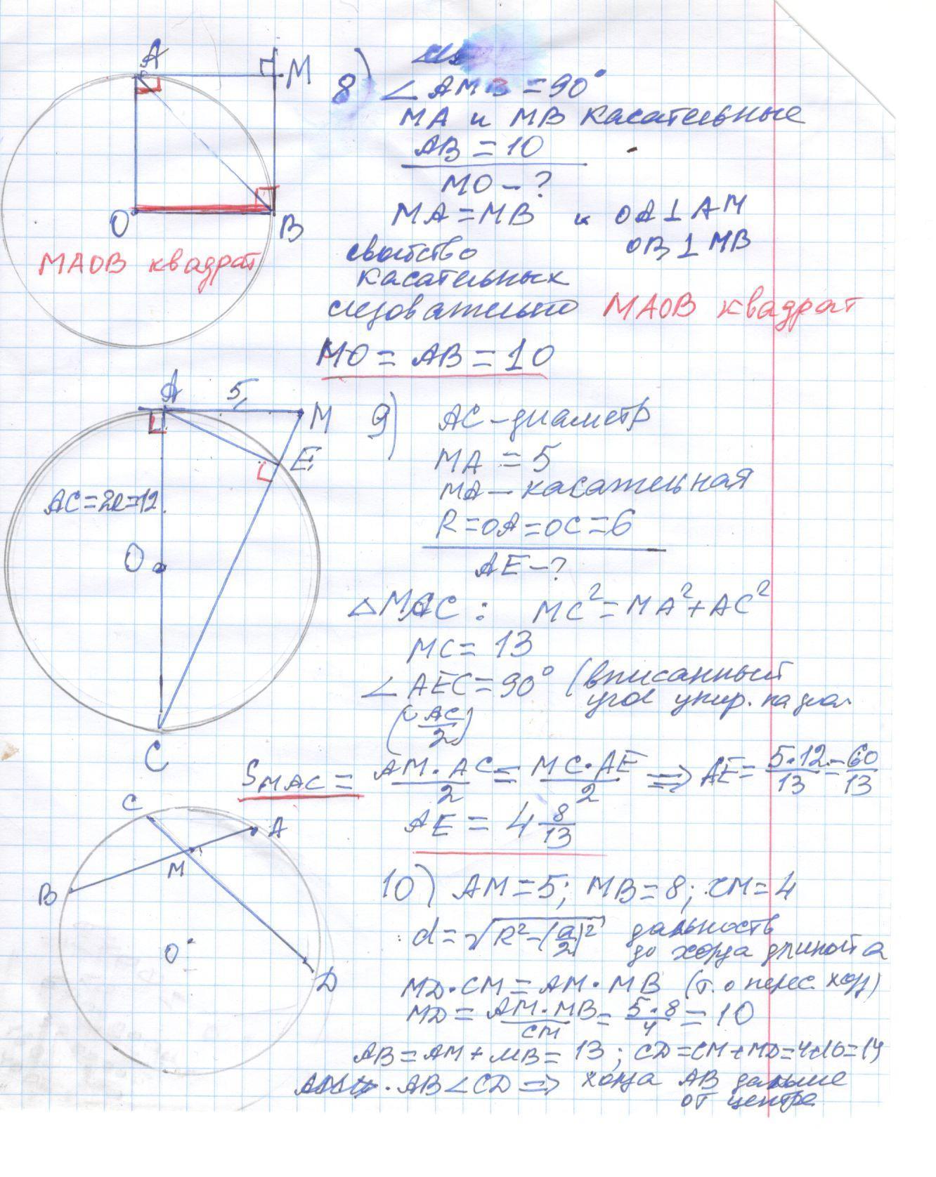 1.Касательная к окружности перпендикулярна к радиусу, проведенному в точку касания.