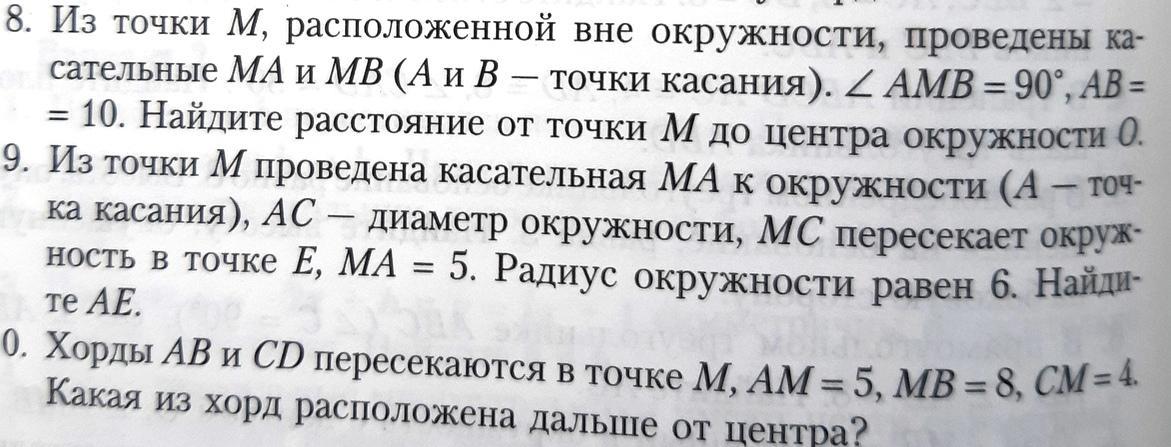 2.Отрезки касательных к окружности, проведенных из одной точки, равны и составляют равные углы с прямой, проходящей через эту точку и центр окружности.