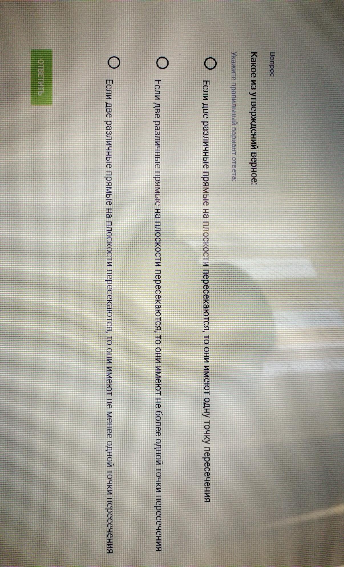 Если две различные прямые на проскости пересекаются, то они имеют одну точку пересечения