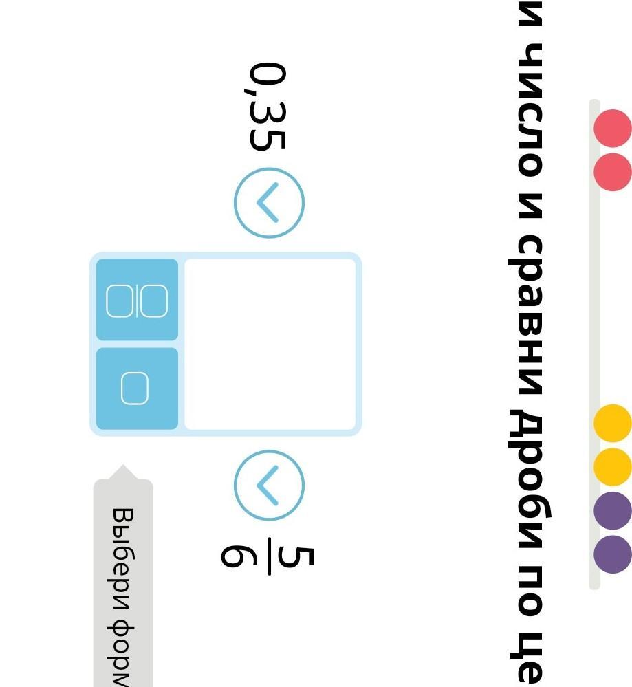 Привет. Скажите, какое число (десятичное или дробное) расположено между: 0,35 < ? < 5/6