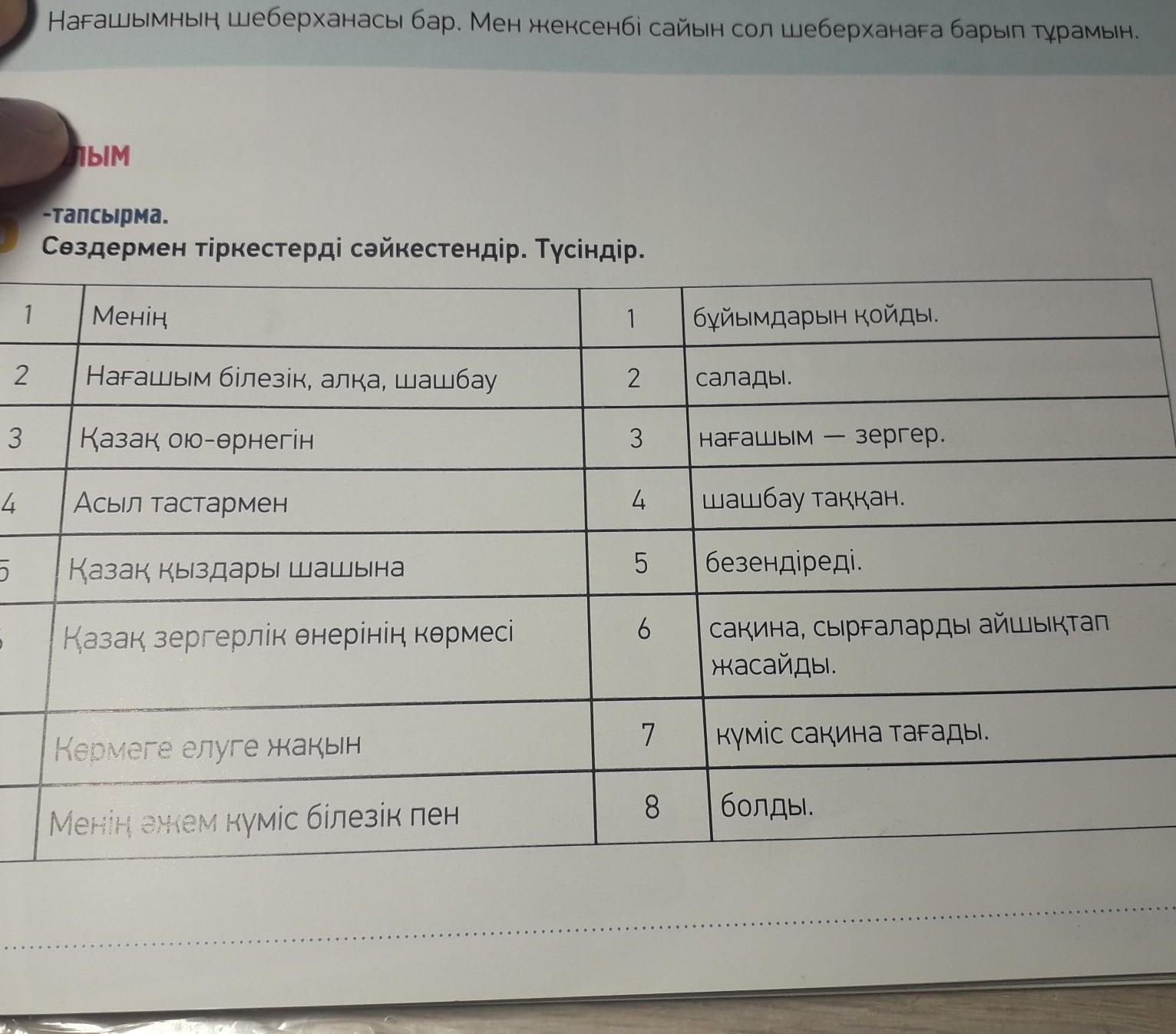 8. Менің әжем күміс білезік пен күміс сақина тағады.