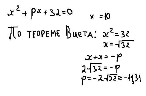 При каких значениях параметра p уравнение x2+px+32=0 имеет корень, равный 10? (Ответ округли до сотых.)