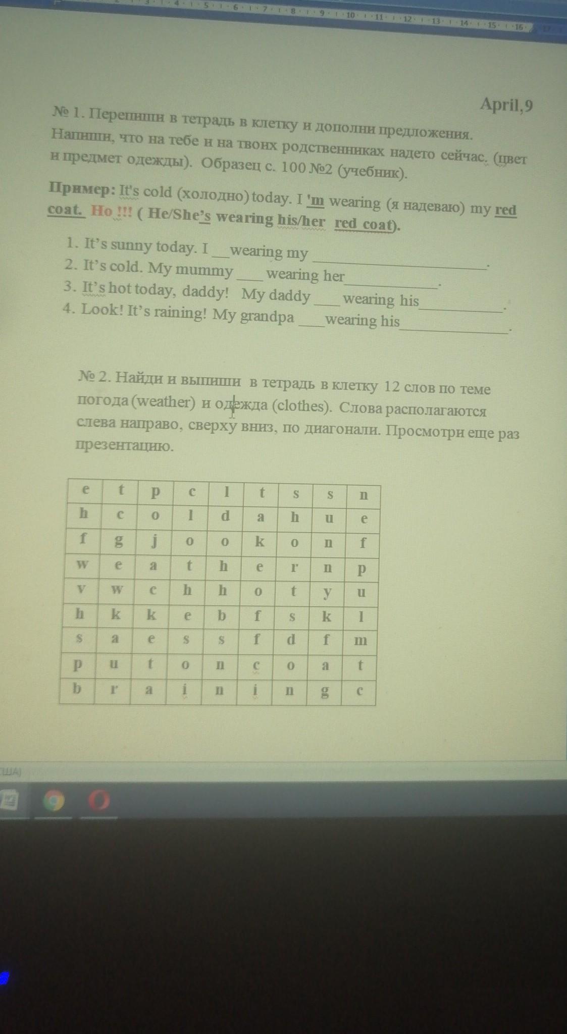 Ответ: it's is sunny today. I'm wearing my black trousers.