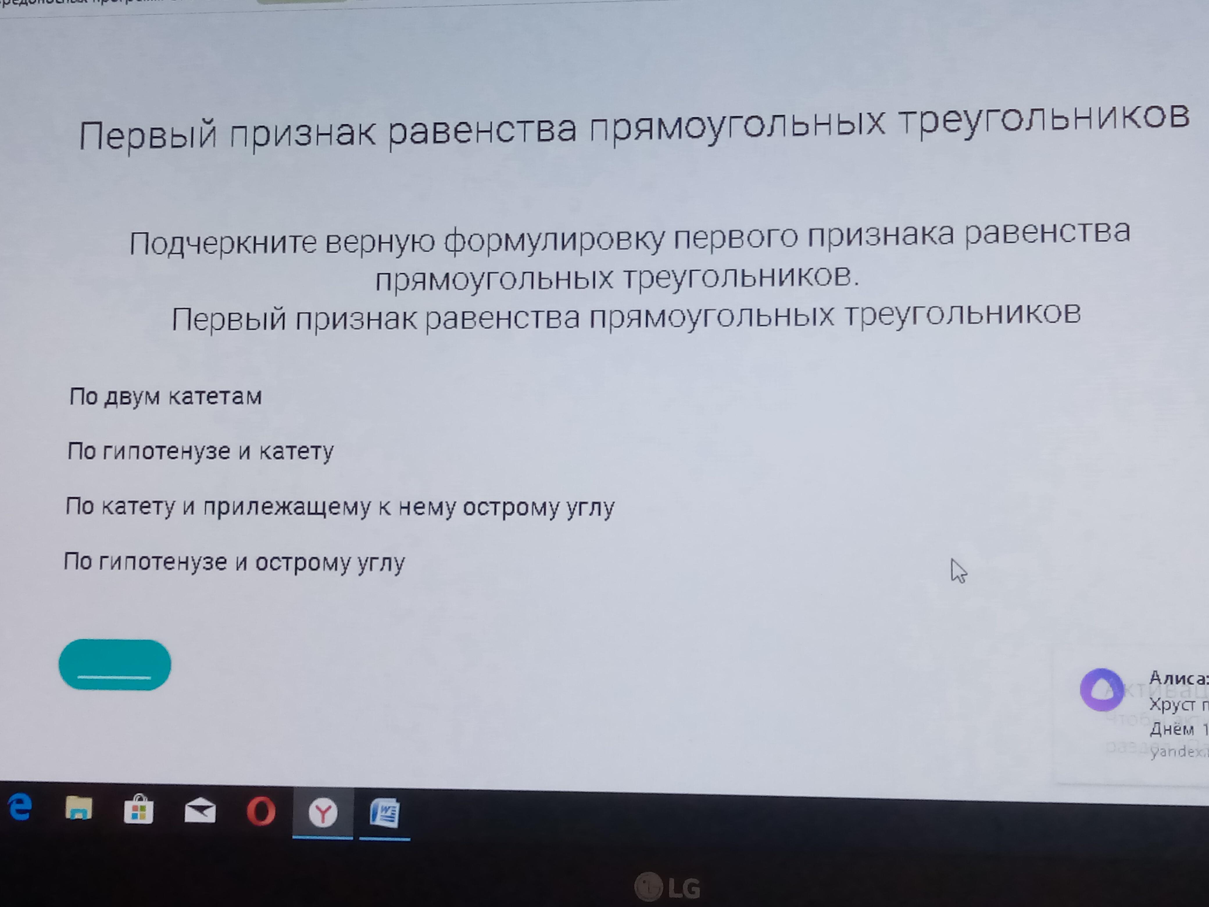 если два катета одного прямоугольного треугольника соответственно равны двум катетам другого прямоугольного треугольника, то такие треугольники равны.