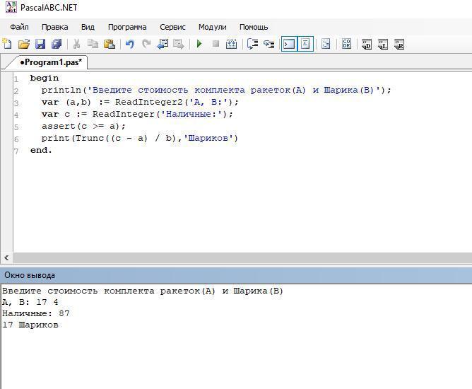 println('Введите стоимость комплекта ракеток(А) и Шарика(B)');