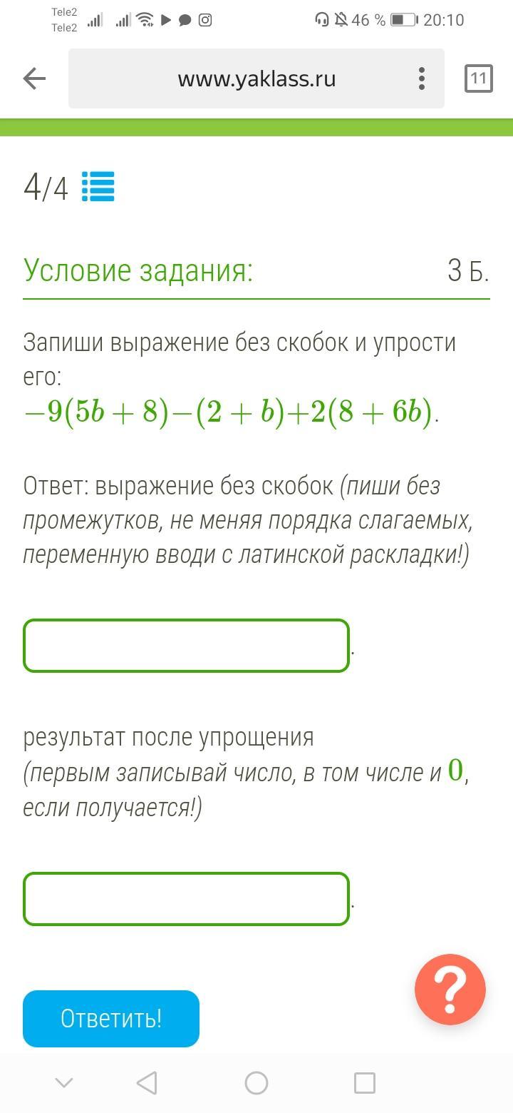 Ответ: выражение без скобок (пиши без промежутков, не меняя порядка слагаемых, переменную вводи с латинской раскладки!)