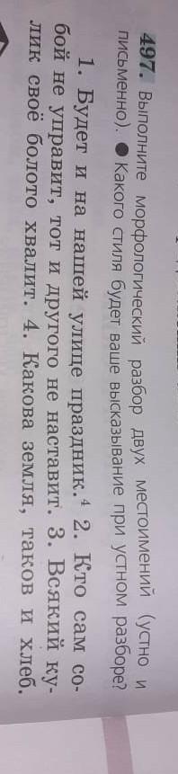 работа с упражнение 497 сделать морфологический разбор местоимения первого предложения