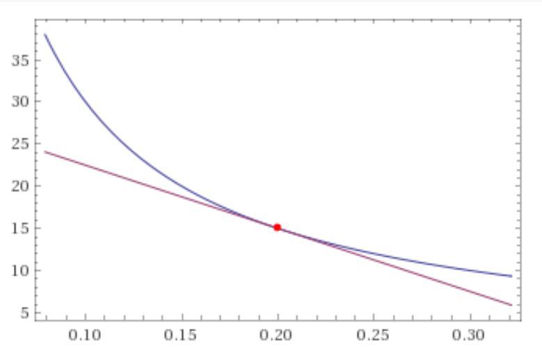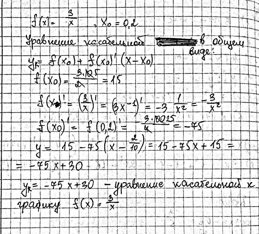 Ответ: у(кас) = -75(х - 0,2) + 15 = -75х + 30.
