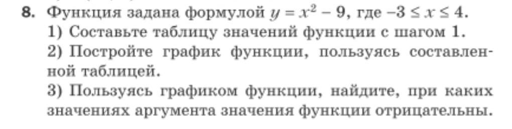 3) Пользуясь графиком функции, найдите при каких значениях аргумента значения функции отрицательны.