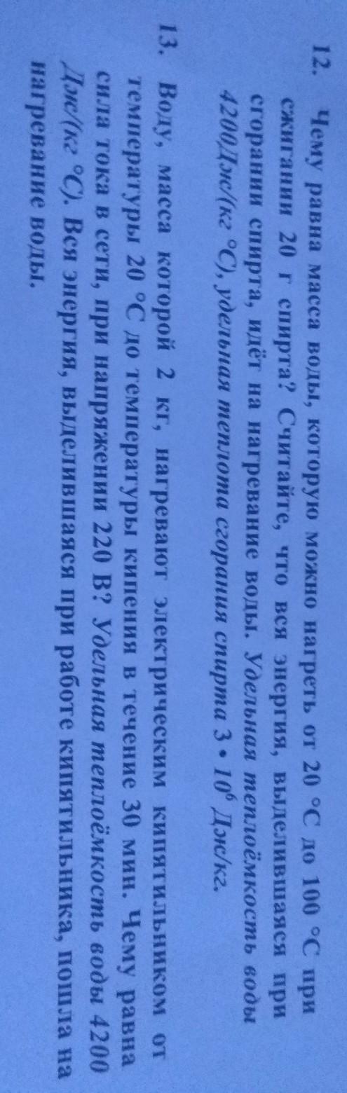 12). теплота от сжигания 20г спирта: Q1=3*10^6 *0.02кг=60000Дж,