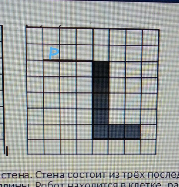 СРОЧНО! На бесконечном поле имеется стена. Стена состоит из трёх последовательных отрезков: вправо, вниз, влево, все отрезки неизвестной длины. Робот находится в клетке, расположенной непосредственно сверху левого конца.