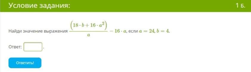 Открываем скобки чисельника подставляя числа: (18×4+16×24 в вадрате)=72+16×24=72+9216=9288