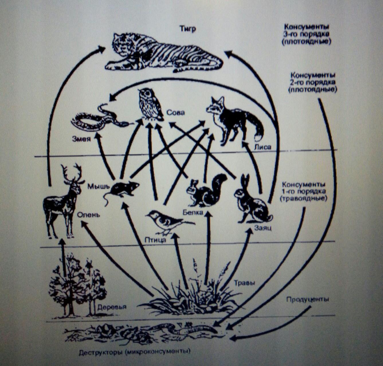 2-я пищевая цепь- трава>олень>тигр.