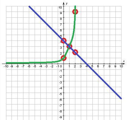 Данное уравнение можно решить графически, нарисовав графики функций (показательная) и
