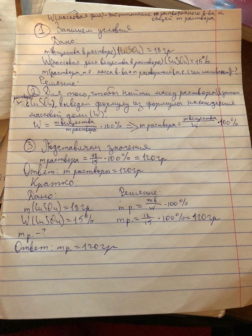 Рассчитайте массу 15%го раствора сульфата меди, содержащего 18г растворенного вещества.