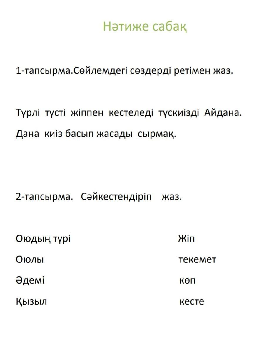 1)Айдана түрлі түсті жіппен түскиізді кестелерді.