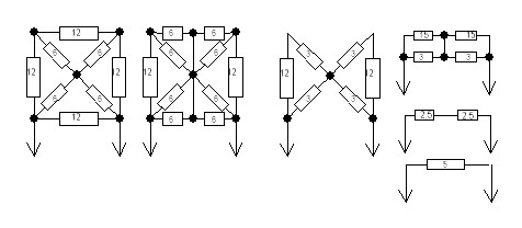 так как схема симметрична, то можно соединить середины верхнего резистор R и нижнего резистора R с узловой точкой