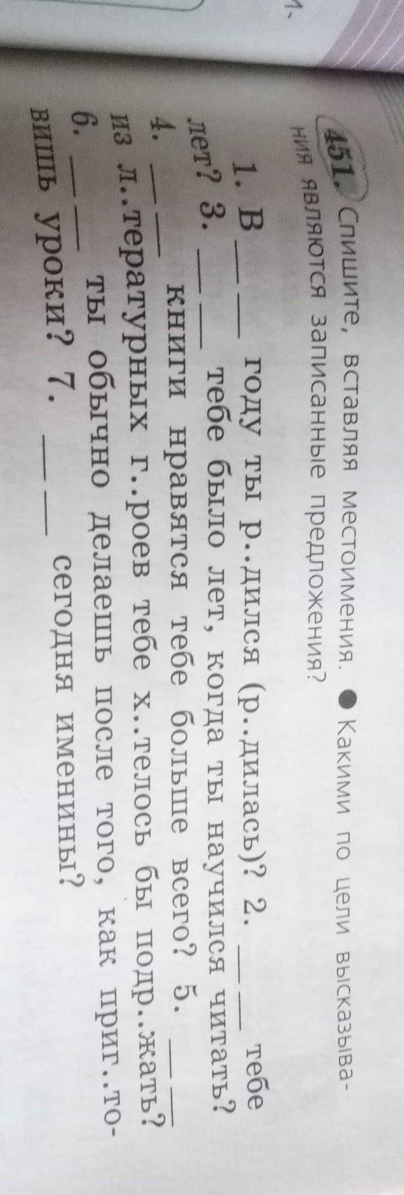 Спишите вставляя местоимения какими по цели высказывания являются записанные предложения