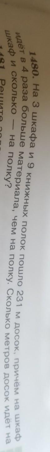 Допустим на полку идёт х досок, тогда на шкаф идёт 4х досок. Имеем уравнение: