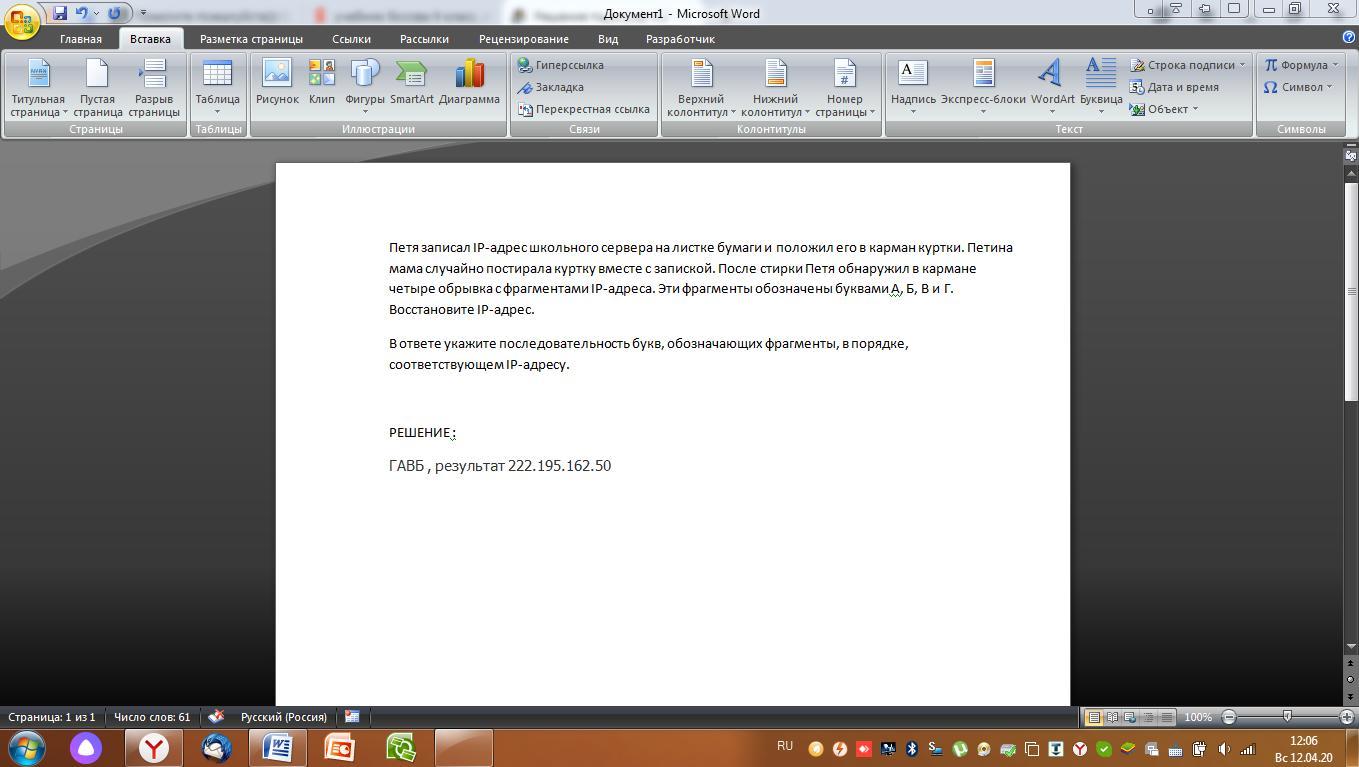 Создать ТЕКСТОВЫЙ файл, указать условие задачи (№8, стр.153), затем в новой строке слово РЕШЕНИЕ и выполнить решение задачи с использованием графической модели (построить граф - "дерево", используя встроенный графический редактор MS Word).