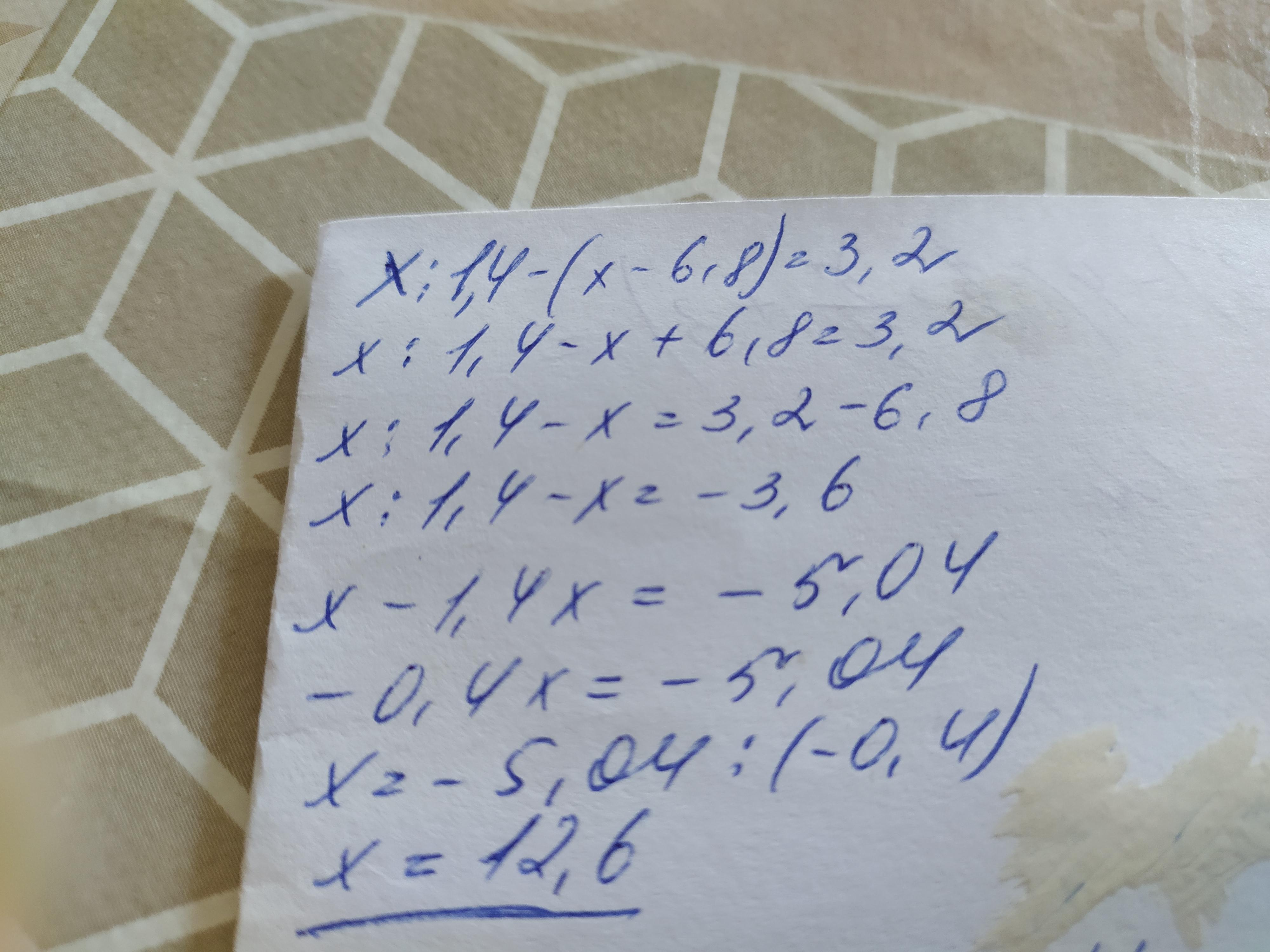 Пошаговое объяснение:1,4-(х-6,8)=3,2