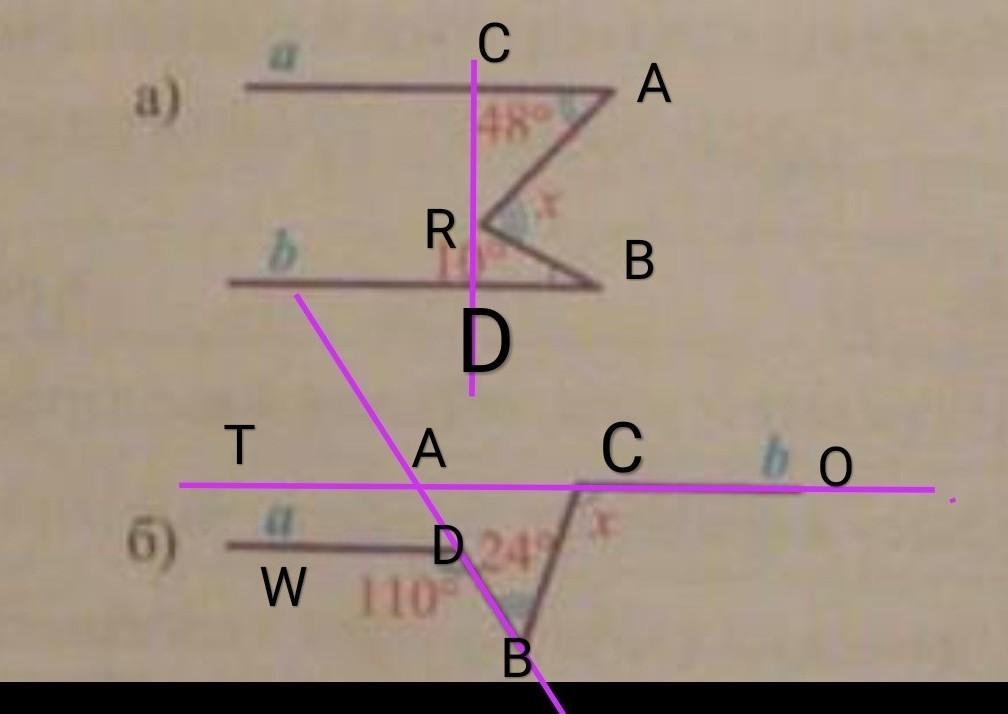 б) продлим прямые а и b, назовём точки как показано на рисунке.