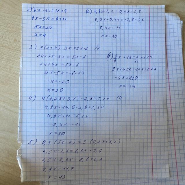 6)3/8x + 19 = 7/12x + 24