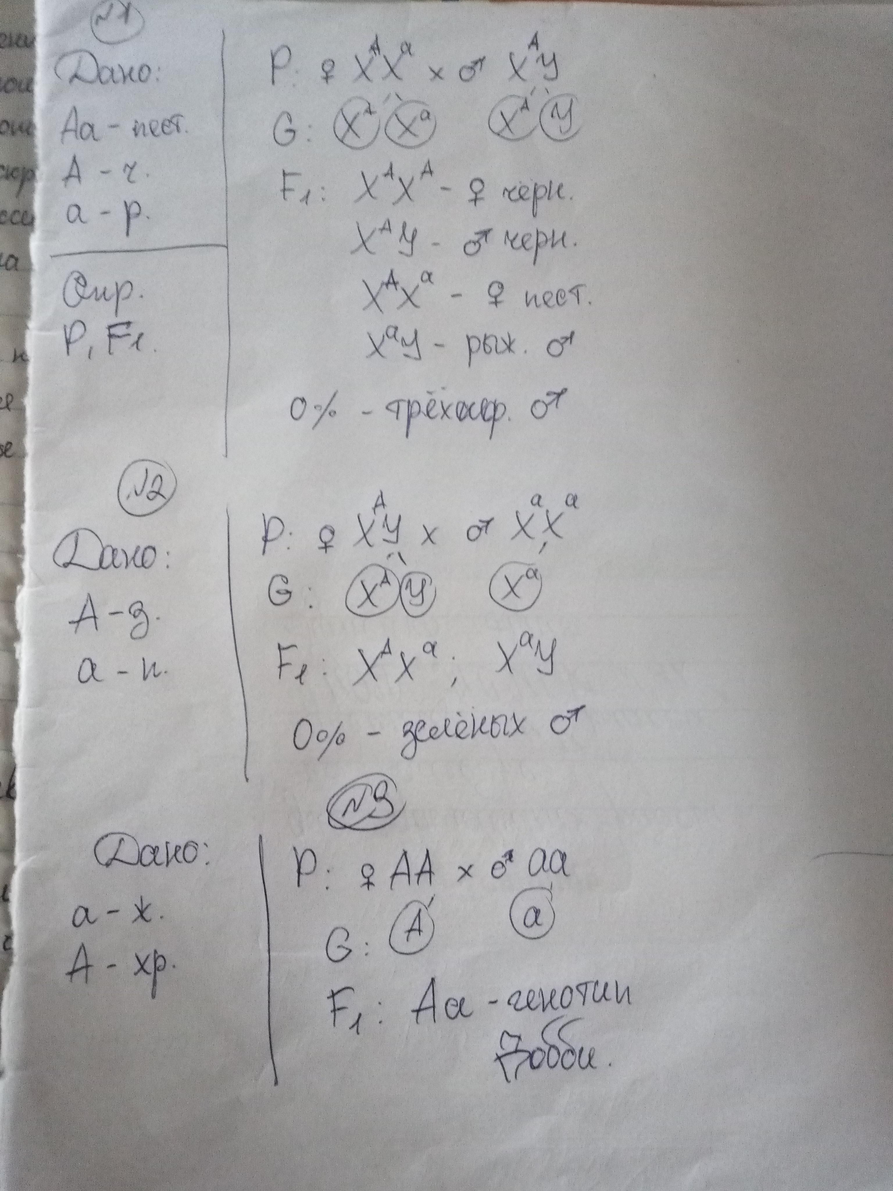 Задача 2. У попугаев сцепленный с полом ген «А» определяет зеленую окраску, ген «а»- пеструю. Зеленую самку скрещивают с пестрым самцом. Каковы генотипы родителей и потомства? Какова вероятность появления среди птенцов зеленых самцов? У птиц самцы гомогаметны.