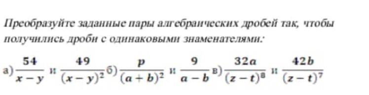 Ответ: а) 54х-54у / (х-у)² и 49/ (х-у)²