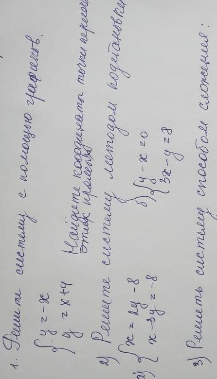 2) а) переписываешь систему, затем вместо х во втором уравнении ставишь 2у-8, получается