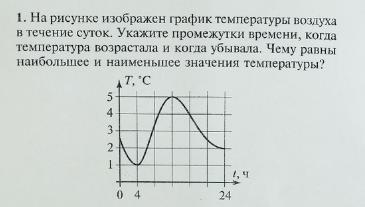 на рисунке изображен график температуры воздуха в течение суток укажите промежутки времени когда температура возрастала и когда убывала. чему равны наибольшее и наименьшее значения температуры? Пожалуйста помогите срочно надо
