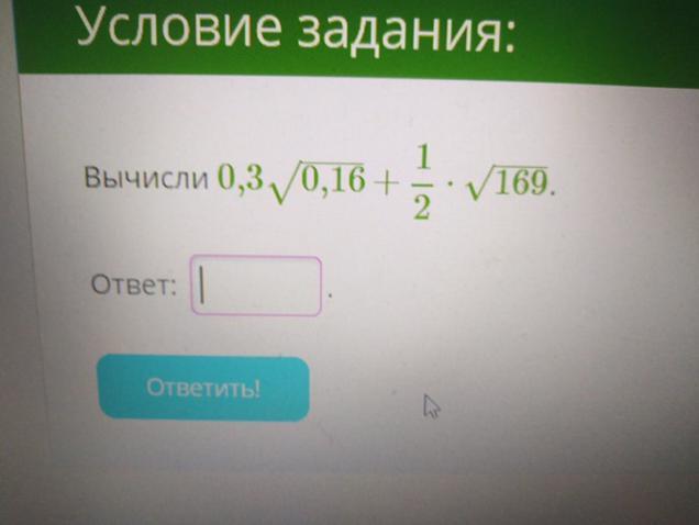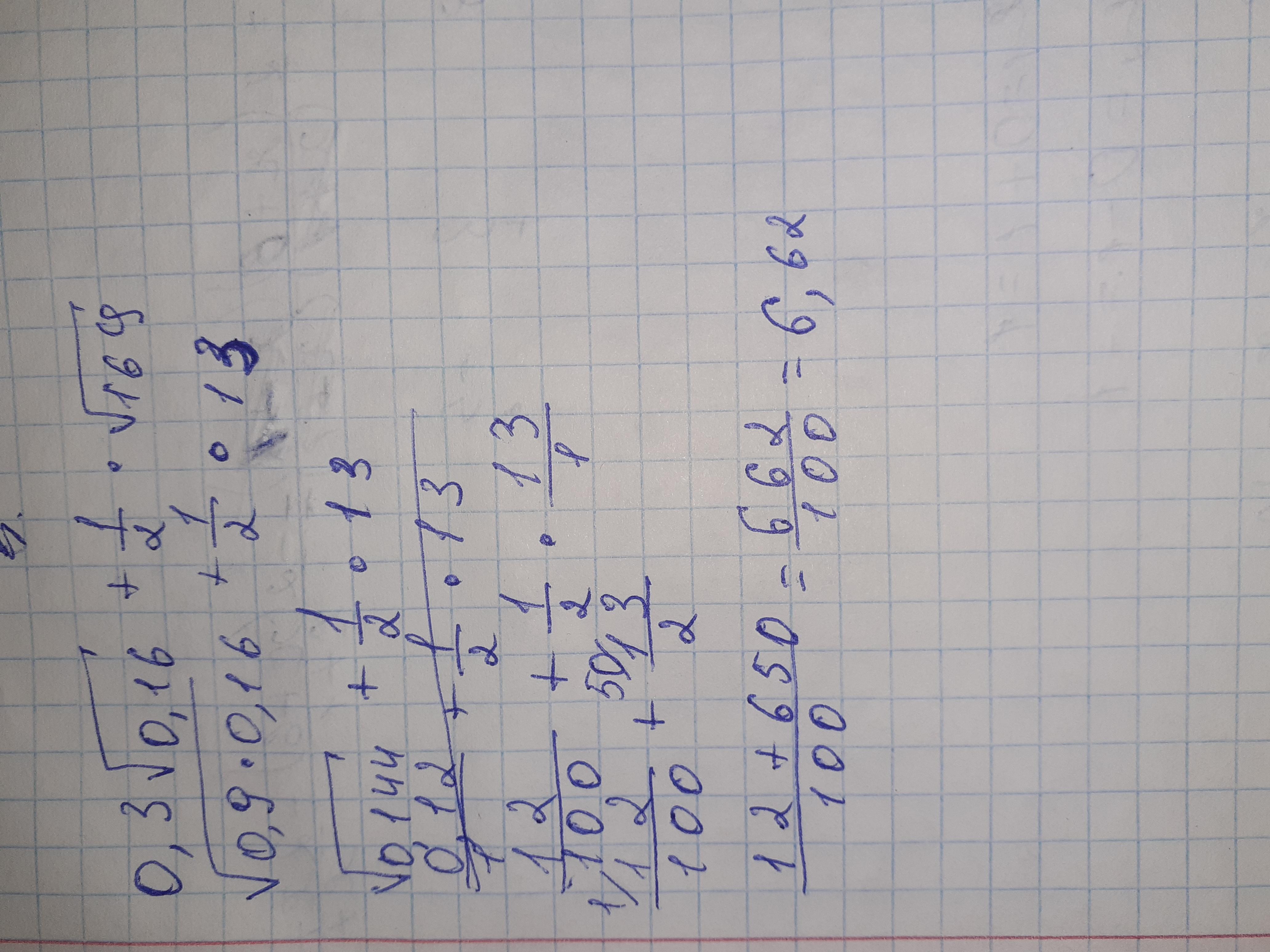 0.3 • 0.4 + 1/2•13=0.12+6.5=6.62