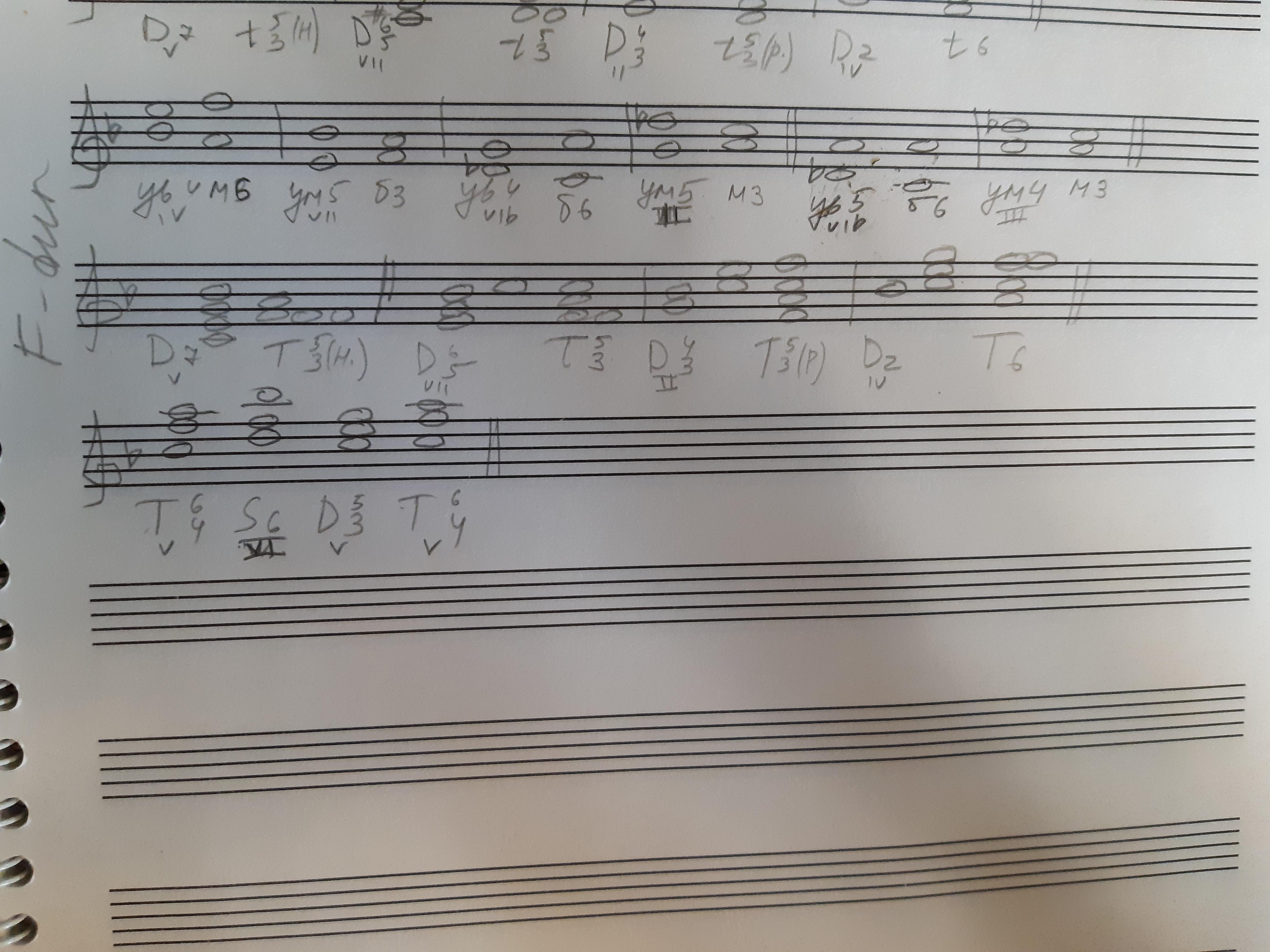 Построить в фа мажор - тритоны ум.5 и ув.4, Д7 c разрешением, аккордовую цепочку T64, S6, D53, T64. (25 баллов)