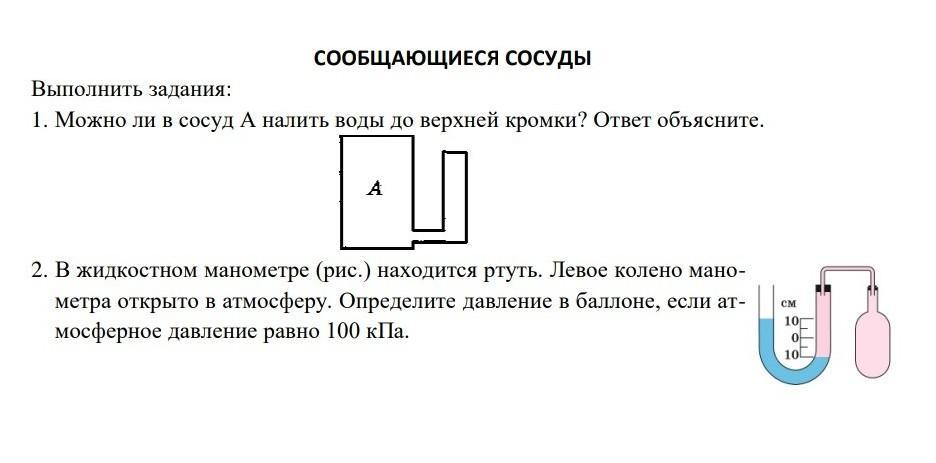 1. Нельзя, так как, по закону о сообщающихся сосудах, воду можно долить до кромки правого сосуда.