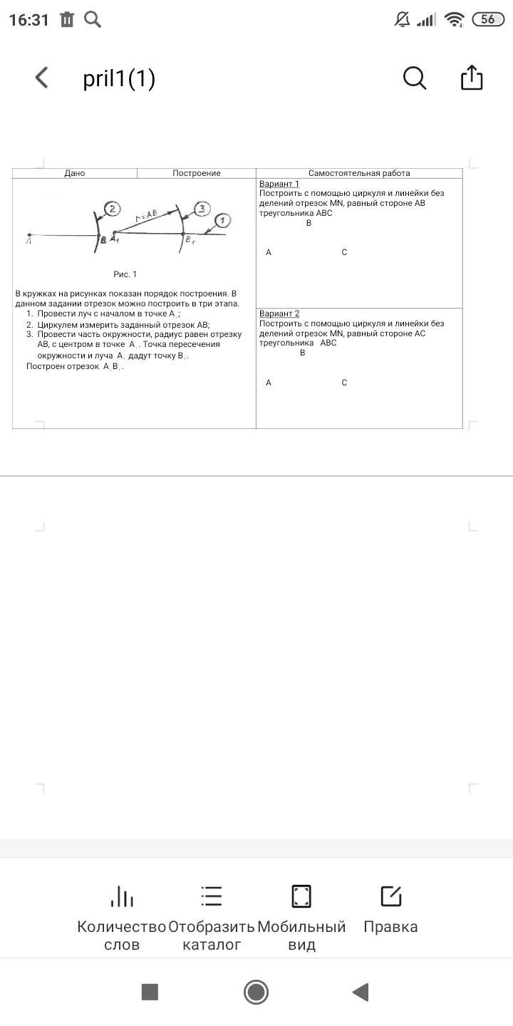 2. Чертим луч (это прямая, которая имеет начало, но не имеет конца) в начале ставим точку M